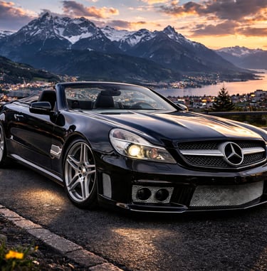 Zeitlos. Black on Black. Der SL500. Offen fahren V8. Keine Kompromisse! Mit der limitierten Brabus Front.